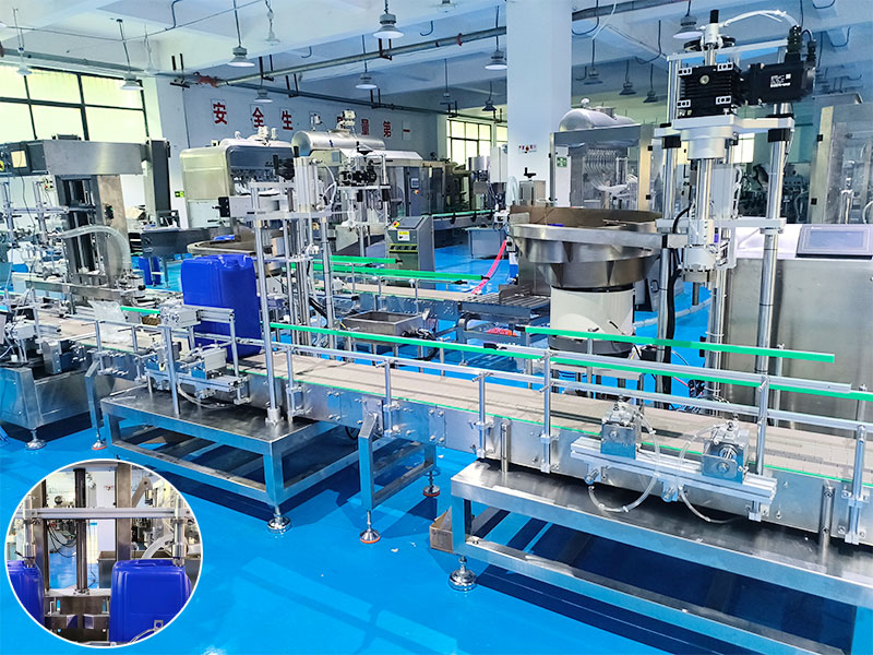 直線式稱重灌裝設(shè)備集成多組獨立稱重灌裝、智能聯(lián)動控制、自動上料、在線監(jiān)測、自動排廢、智能送出等工序,直線式稱重灌裝生產(chǎn)線核心在于實現(xiàn)了聯(lián)動同步生產(chǎn)的作業(yè)模式,根據(jù)不同的生產(chǎn)要求靈活變動灌裝方式,提高灌裝產(chǎn)能。直線式稱重灌裝生產(chǎn)線集中了:輸送機、灌裝機、上蓋機、旋蓋機、貼標機等諸多自動化設(shè)備的聯(lián)動灌裝。