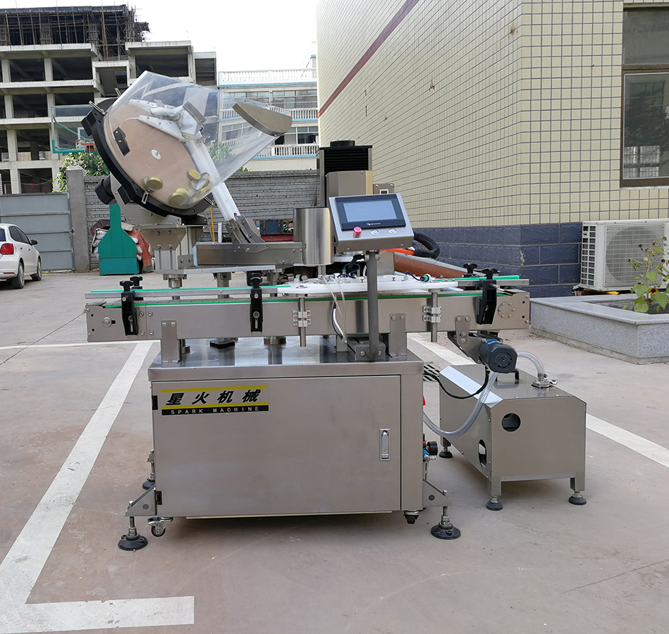 是玻璃瓶馬口鐵瓶旋緊瓶蓋的專用自動化真空旋蓋設(shè)備,該醬料玻璃瓶真空旋蓋機包括:進出罐輸送、進罐器、配蓋器、真空室、旋蓋頭等主要部件,設(shè)備采用304不銹鋼制作,外形美觀,結(jié)構(gòu)考究,PLC電子光纖傳感控制,實現(xiàn)自動進出罐、自動配蓋、抽真空、夾緊瓶身、旋蓋等動作,多應用在醬料瓶、罐頭及保健食品行業(yè),采用氣動和電氣編程控制取代機械傳動裝置帶來的好處是:設(shè)備可以很干凈,避免潤滑油脂對生產(chǎn)環(huán)境和產(chǎn)品的影響,很重要的是,可以對產(chǎn)品需達到的指標參數(shù)進行監(jiān)控和靈活調(diào)整,如真空度、擰蓋力矩等。氣動裝置,運行靈活方便,大大提升了企業(yè)的工作效率。